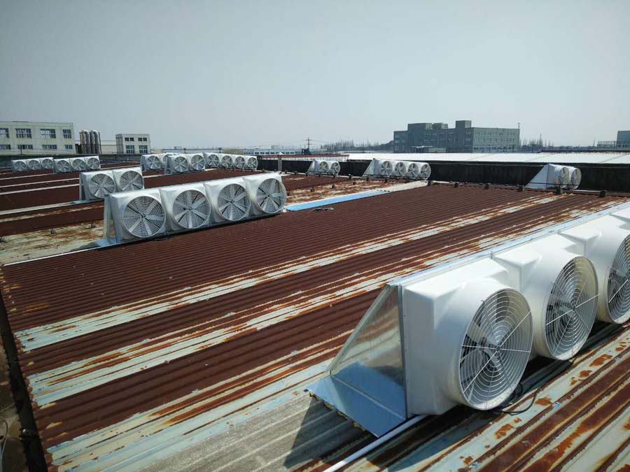 4、作排风扇用:一般排风扇(俗称扬谷扇)效能比较差,一台排风扇吹不到几个人,,负压风机则不然,不管是放在地上用还是挂在空中用。一般1000平方米车间使用4台,即有满屋都是风吹的功效。